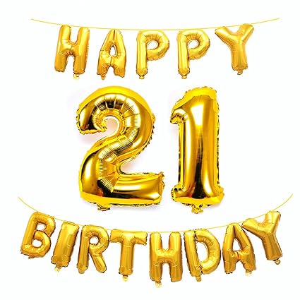 Amazon.com: Happy Birthday Balloons Banner Gold Mylar Foil 16'' HAPPY BIRTHDAY Alphabet Foil Balloon Letter Balloons DIY Amazon.com: AZOWA Big 21 Balloons Jumbo Number 21 Balloons with Air Filled Gold Happy Bday Cursive Letter Balloons with Pennant